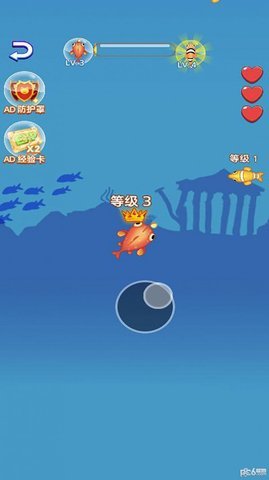 3、在探索过程中,玩家会遇到其他海洋生物,可以选择吞噬比自己小的生物来获取经验和成长,提升自己的等级。