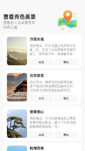 景点标记:轻松标记去过或想去的景点,便于规划旅行。