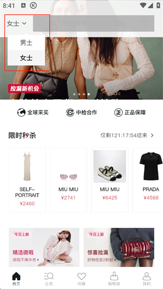 打开软件后,先设置性别,系统会依据所设性别为用户推荐好物。