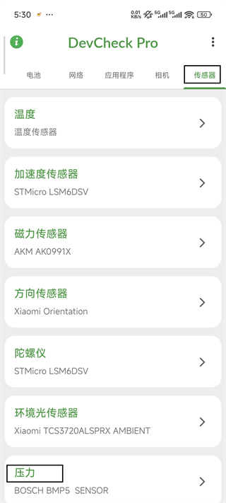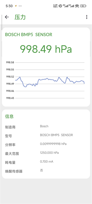 识别气压计数据:在传感器列表中找到【压力】选项(单位通常为hPa或kPa),正常环境气压值范围约950-1050hPa(因海拔而异)。