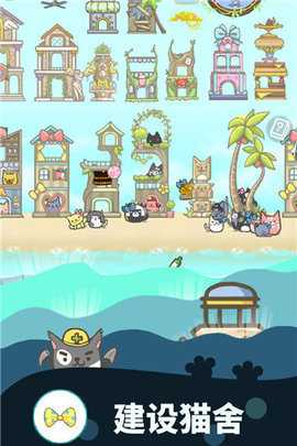 2、在积累了一定的小鱼干后,玩家可以进入建设模式,选择建造猫舍或解锁新的岛屿,提升自己的猫咪数量和种类。