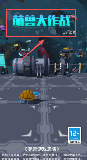 查看游戏主界面,点击下方蓝色小兽所在的场景即可开启对战;也可以查看右下角适龄提示与健康游戏说明相关内容。