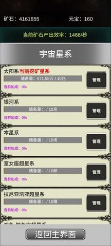 1、游戏采用了简单的挂机玩法,背景设定在星际挖矿的宇宙中,玩家扮演宇航员驾驶飞船,穿越星河,挖掘神秘星球中的宝藏。