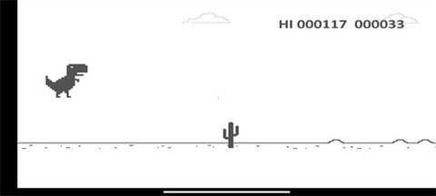 2、点击屏幕,小恐龙就会跳跃,玩家需要通过点击来躲避前方出现的仙人掌和食人花等障碍物。