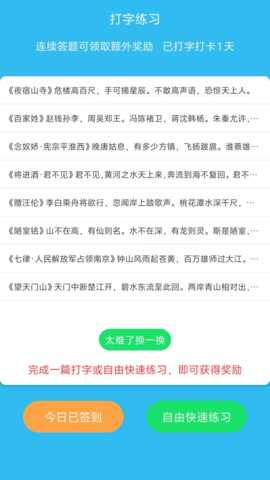 2. 学习古诗文:软件每日更新古诗文内容,用户可以通过对照打字来学习古诗文知识。