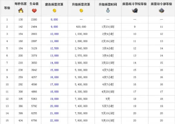 这里由于不便制作表格,就放上了图片,每级的详细数据都在这里,需要的自己看