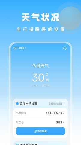 天气提醒:根据出发地和目的地的天气情况,提供及时的天气预报,帮助用户合理安排出行。