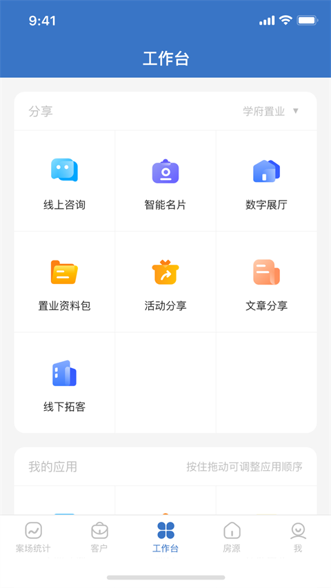4、工作台:线上资讯、智能名片、数字展厅等工作常用工具。