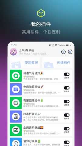 一个就够是一款功能强大的插件式任务管理工具,帮助用户根据个人需求自定义手机的功能和行为。软件支持20多种插件,涵盖了全局弹幕通知、侧边气泡通知、全局透明壁纸等多种实用功能,极大地提升了用户的手机使用体验。无论是想要简化操作流程,还是希望为手机增添个性化功能,一个就够都能满足您的需求。