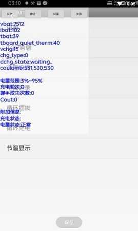 2、在主界面上,看到电池的当前状态,包括电量、温度等信息。