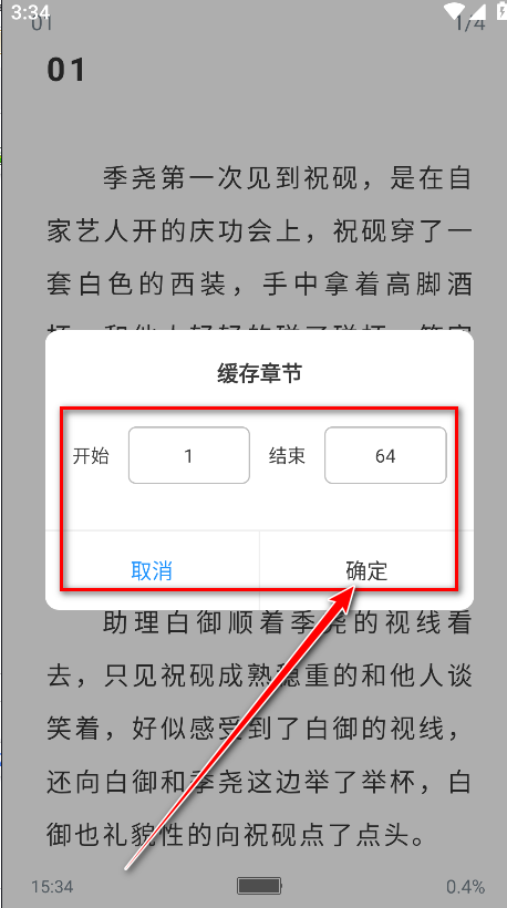 5.输入开始章节和结束章节,然后点击确定即可。