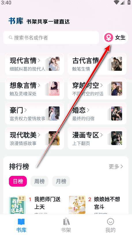 4.即可切换到女生小说。
