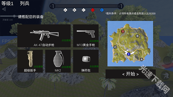 进入游戏前,先搭配好您的装备,之后点击“开始”进入游戏。