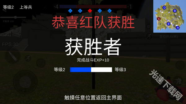 游戏的胜利条件为占领所有领地据点,或是击败敌人达到预设比分。因此,玩家需根据右上角地图的指引,前往敌人的占领区域,进行占领或击杀敌人。