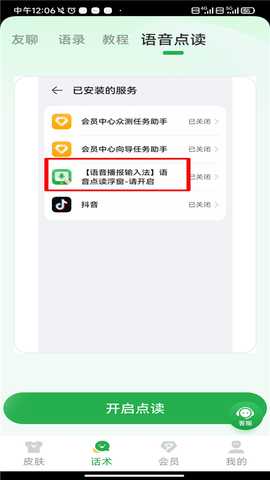 6、点击话术,这里有教你怎么聊天,怎么使用教程,语音点读等功能。