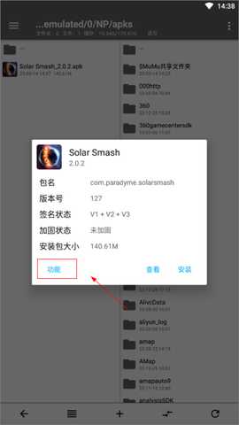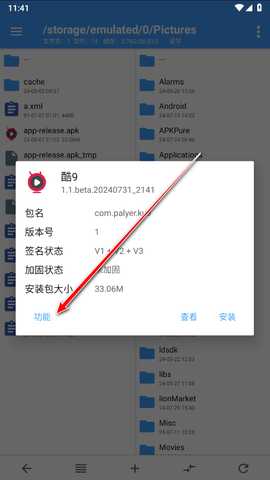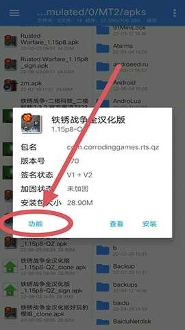 6、点击提取好的apk文件,然后点击功能;