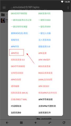7、找到APK签名功能;