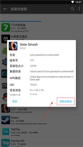 3、选择一个手机上要提取的应用或者游戏;