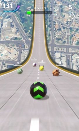 2、在比赛中,玩家需要通过左右滑动屏幕来切换车道,躲避障碍物并收集沿途的硬币,确保球的速度始终保持在最佳状态。