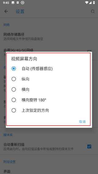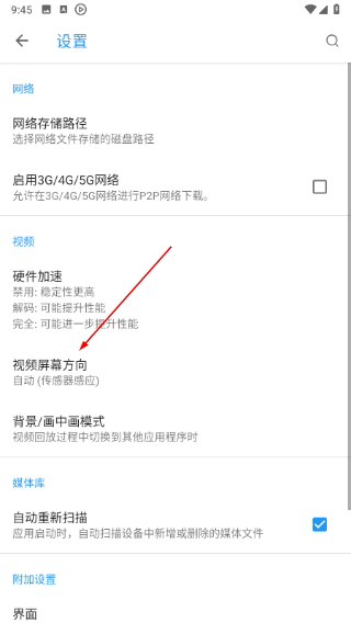3、找到视频屏幕方向,点击进入对应设置页。
