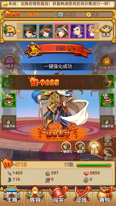 装备强化,进一步提升武将实力。