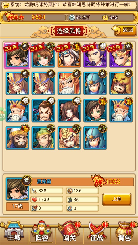 进入关卡,选择合适的武将布阵。