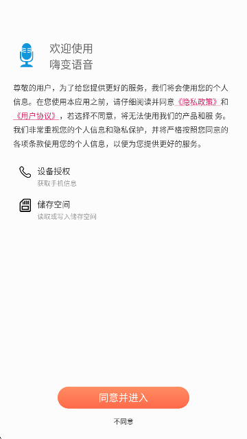 同意用户协议:同意用户协议,进入app。