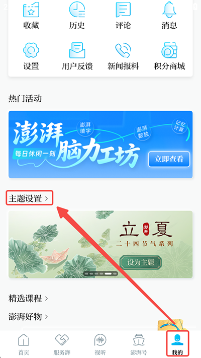 1、进入澎湃新闻App后,点击右下角的我的