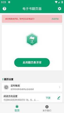 1、下载并安装电子书翻页器后,打开应用,进入设置界面。
