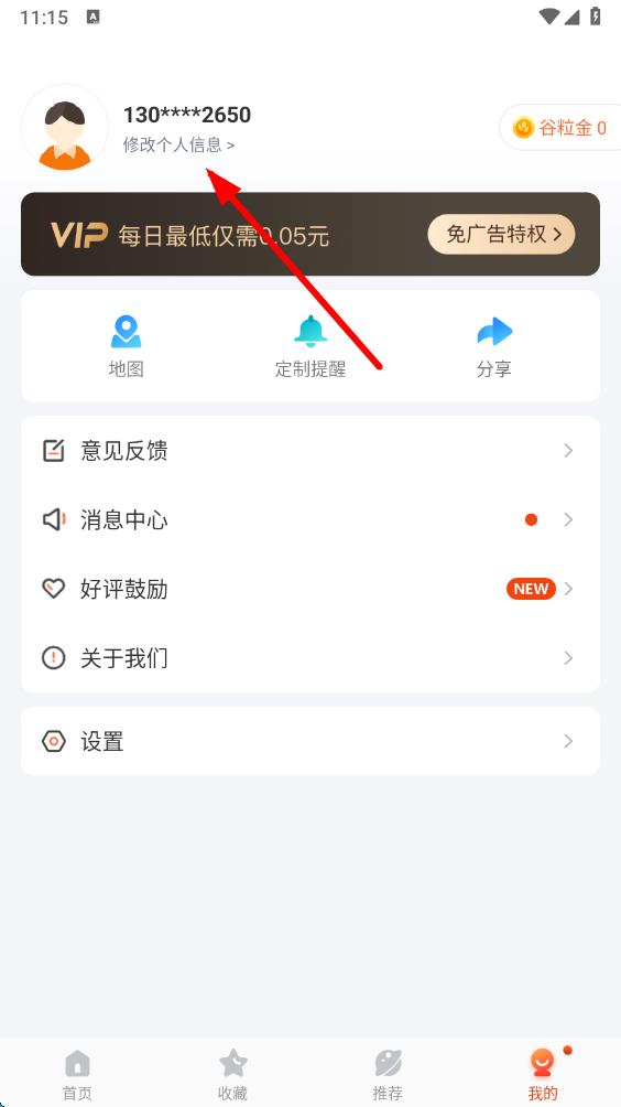 2、在个人界面中,点击头像下方的“修改个人信息”选项,进入个人资料页面。