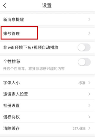 在设置菜单中选择【账号管理】选项。