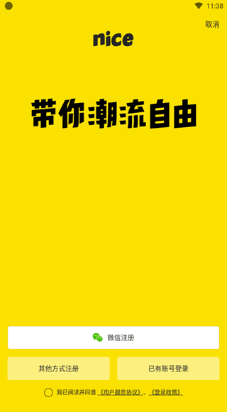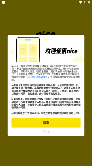 下载并安装打开nice app,阅读协议自行选择是否同意