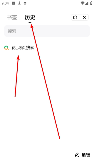 4. 进入历史页面后,可以查看网页搜索等记录,并利用编辑功能对历史记录进行管理。