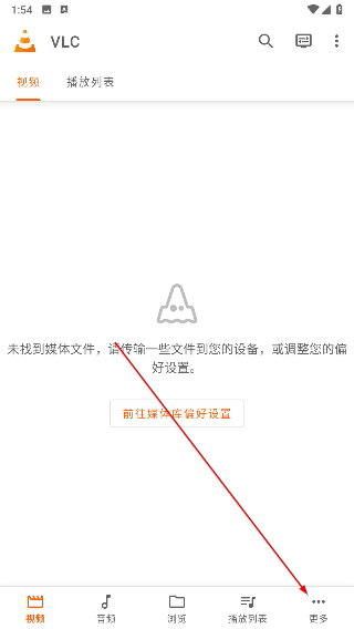 1、打开VLC播放器,点击右下角更多进入菜单页。