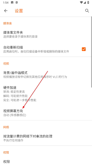 3、点击视频屏幕方向,进入对应方向选择页面。