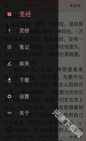 点击首页左上角,就可以看到圣经、灵修、做笔记和设置等选项。