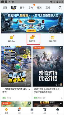 登录和平营地后,在首页点击“资讯”,能看到“营地工具”选项。