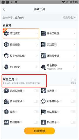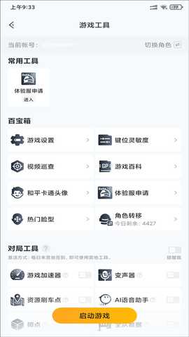 进入该选项后,会看到百宝箱的常用功能,包含游戏设置、键位灵敏度设置、视频巡查、游戏百科等功能,找到并打开“体验服申请”功能。