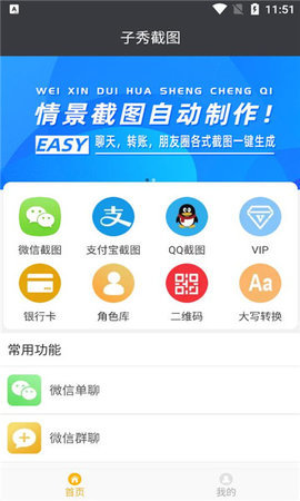 1、下载并安装子秀截图应用后,打开软件,选择您想要生成的截图类型,如聊天截图或转账截图。