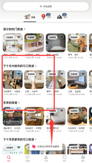 2、在搜索框中输入目的地和出行日期,利用价格、房型等筛选条件精准定位心仪房源。