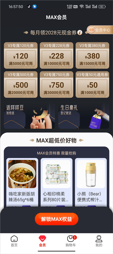 会员可享受平台专属折扣、免邮服务、双倍积分、生日特权及隐藏福利商品等专属权益。