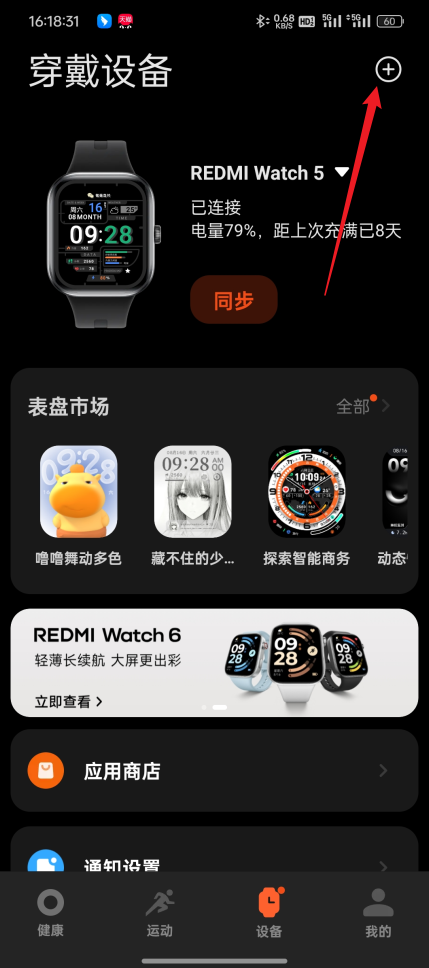 1、打开小米运动健康App,进入底部的“设备”界面。