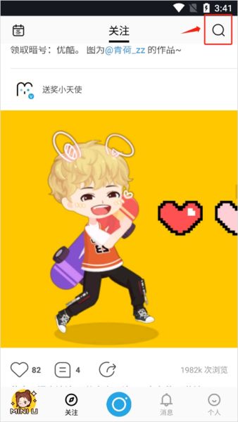主动邀请好友。在广场页点击右上角的“搜索”键。