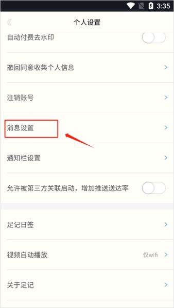 进入“个人设置”页面后,选择“消息设置”选项。