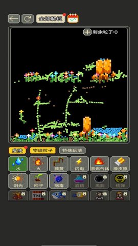 1、进入游戏后,玩家首先会看到一个沙盒界面,可以选择不同的粉末进行操作。点击屏幕上的粉末,拖动它们到想要的位置,观察它们的变化。