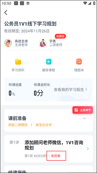 4. 查看学习进度:在个人中心,查看自己的学习进度,了解已完成的课程和待学习的内容,以便更好地进行学习规划和调整。