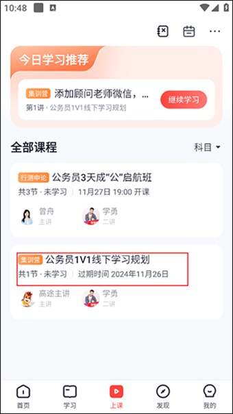 4、进入课程详情界面,上方会显示待学习的课堂,点击进去;