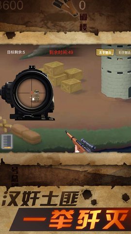 战狼敢死队是一款益智游戏,具有多种操作模式。玩家可以收集和强化各种不同的武器,如汉阳造、98k等等。敌人潜入了百乐门、东城门、和平饭店等多个著名战区,玩家需要设下关卡,摧毁碉楼、狙击敌方长官,甚至进行秘密潜入等多种关卡玩法。