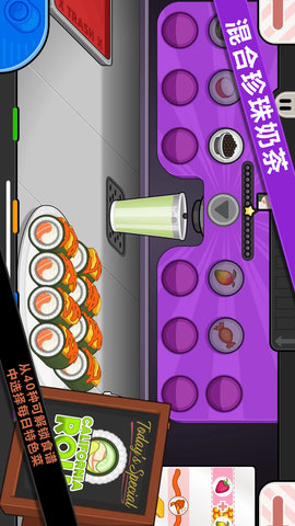 4、在制作完成后,玩家需要为顾客准备饮品,如泡泡茶,并将寿司与饮品一起送到顾客的桌上,确保顾客满意。