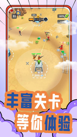 2、丰富的视觉体验:游戏采用卡通风格的画面,丰富的关卡和敌人设计激发玩家的随机应变能力,增加了游戏的趣味性。